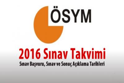 ÖSYM tarafından 2016 Sınav Takvimi yayınlanmıştır. KPSS Ortaöğretim ve KPSS Önlisans için başvuru ve sınav tarihlerine sayfamızdan ulaşabilirsiniz.